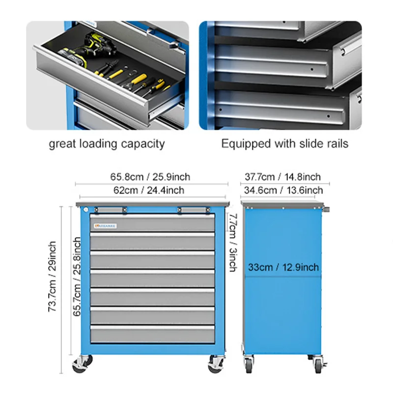 7 cajones con cierre deslizante: almacenaje en capas para mantener las herramientas organizadas.