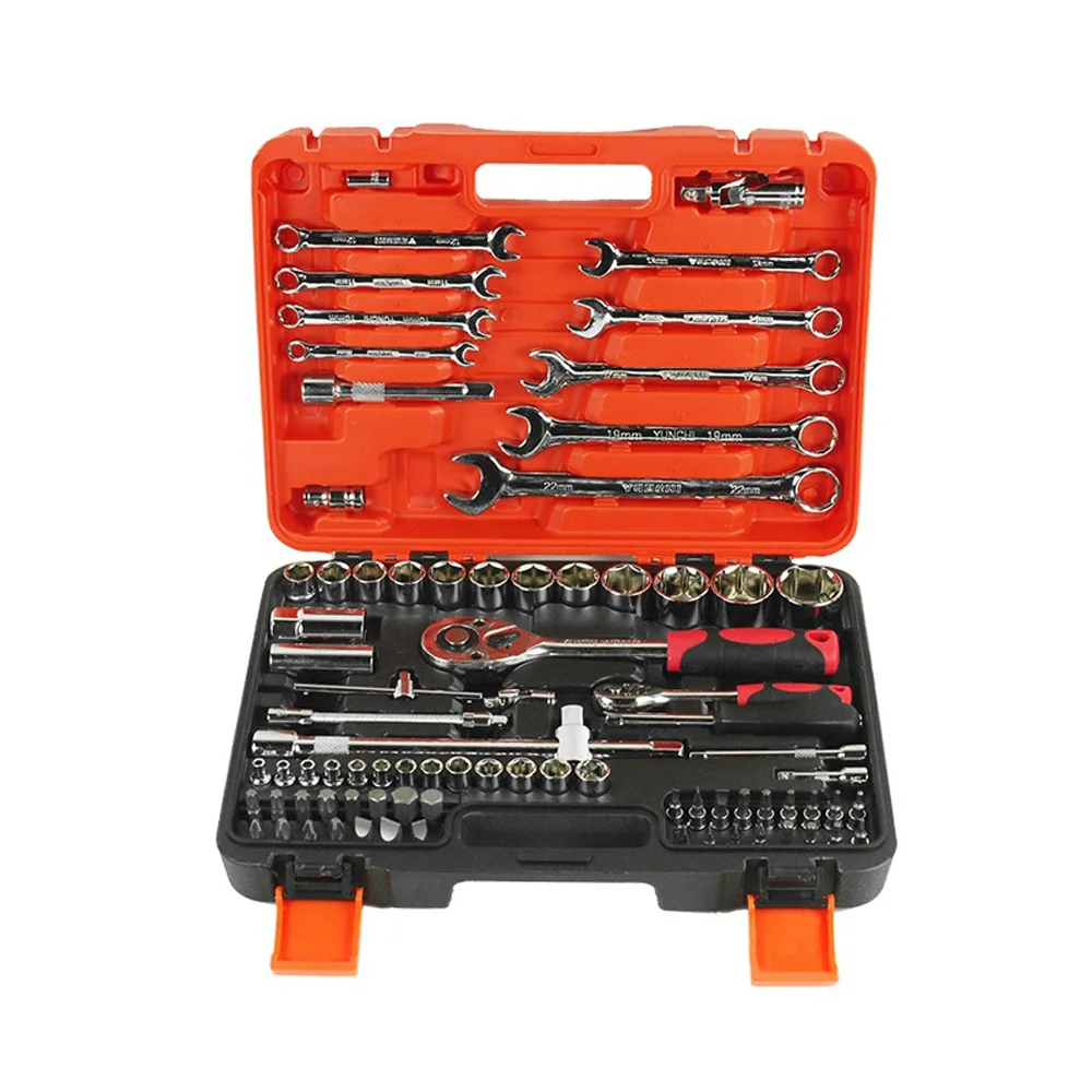 El juego de herramientas de 82 piezas está diseñado para ofrecer una solución completa en trabajos de reparación automotriz y mantenimiento en general. Fabricado en acero cromo-vanadio, garantiza alta resistencia, durabilidad y rendimiento incluso en usos exigentes.