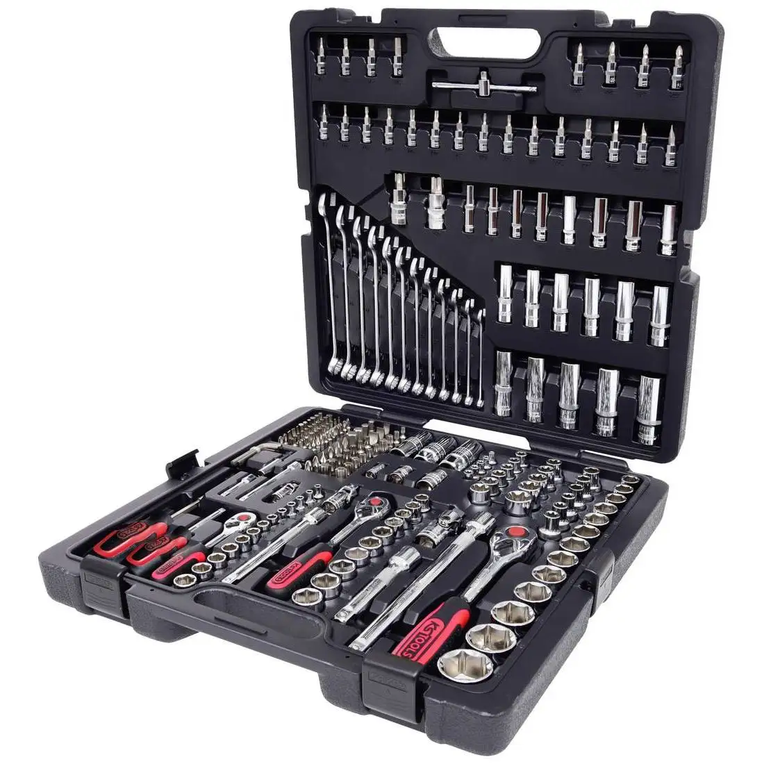 El KS Tools 918.0216 es un completo juego de llaves de vaso y herramientas de 216 piezas diseñado para satisfacer las necesidades tanto de profesionales como de aficionados al bricolaje y la mecánica. Fabricado con materiales de alta calidad y precisión, este kit incluye una amplia selección de vasos, carracas, llaves y puntas, organizadas en un maletín robusto que asegura un almacenamiento ordenado y un transporte cómodo.