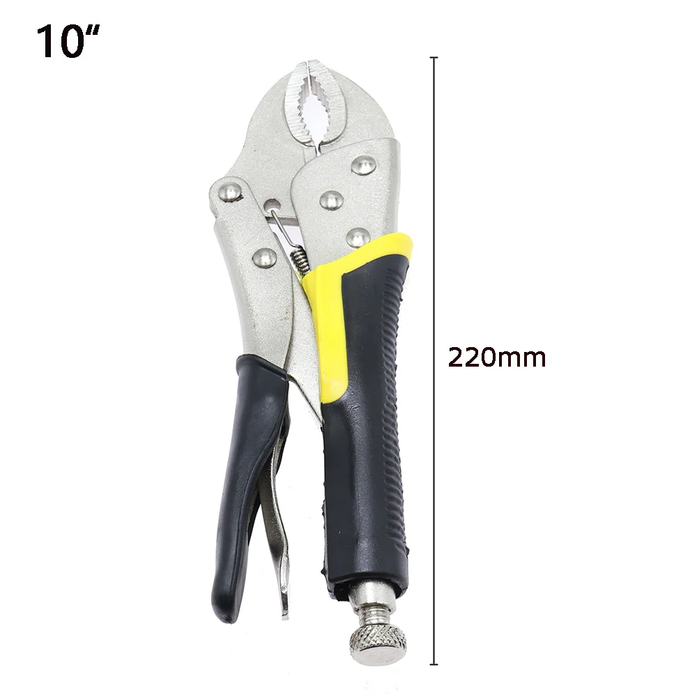Tenazas de bloqueo de 10 pulgadas diseñadas para ofrecer una sujeción firme y segura en una amplia variedad de trabajos de metalistería, bricolaje y mantenimiento general. Incorporan un mecanismo de ajuste de presión que permite adaptar la fuerza de sujeción al grosor y tipo de pieza, garantizando un agarre sólido y estable.
